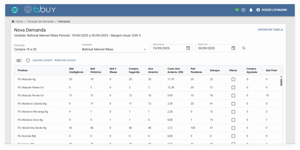 O BBuy é uma ferramenta de gestão de demanda que ajuda o varejista a comprar melhor. Com algoritmos de IA, ele analisa histórico de vendas, clima, sazonalidade e tendências de mercado para calcular a quantidade ideal de cada item.