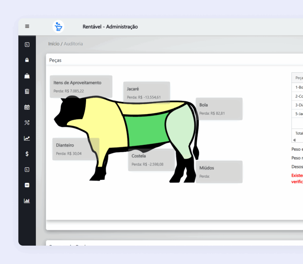 O Mercado Rentável ajuda a identificar e reduzir perdas nos departamentos de açougue, hortifruti e padarias. que são pontos críticos para o supermercado. O sistema importa receitas e auditorias direto do ERP e traduz tudo em gráficos simples, mostrando onde estão os desperdícios e como agir para proteger a margem.